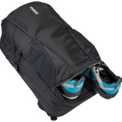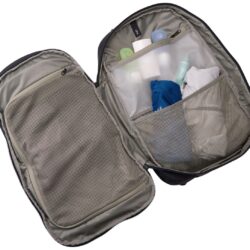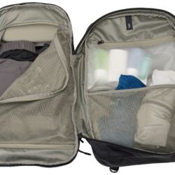 - Batoh sa dá úplne rozopnúť, takže je možné do neho vkladať veci z obidvoch strán. Má priehradku na objemné predmety so sieťovaným panelom, ktorý sa zapína na zips a udržuje veci utriedené.