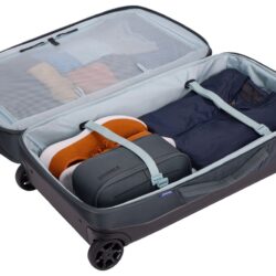 - Sťahovacie pásiky umožňujú maximálny úložný priestor: Vnútorný systém sťahovacích pásikov pomáha zaistiť predmety proti pohybu a vonkajšie sťahovacie pásky pomáhajú zmenšiť celkovou veľkosť batožiny.