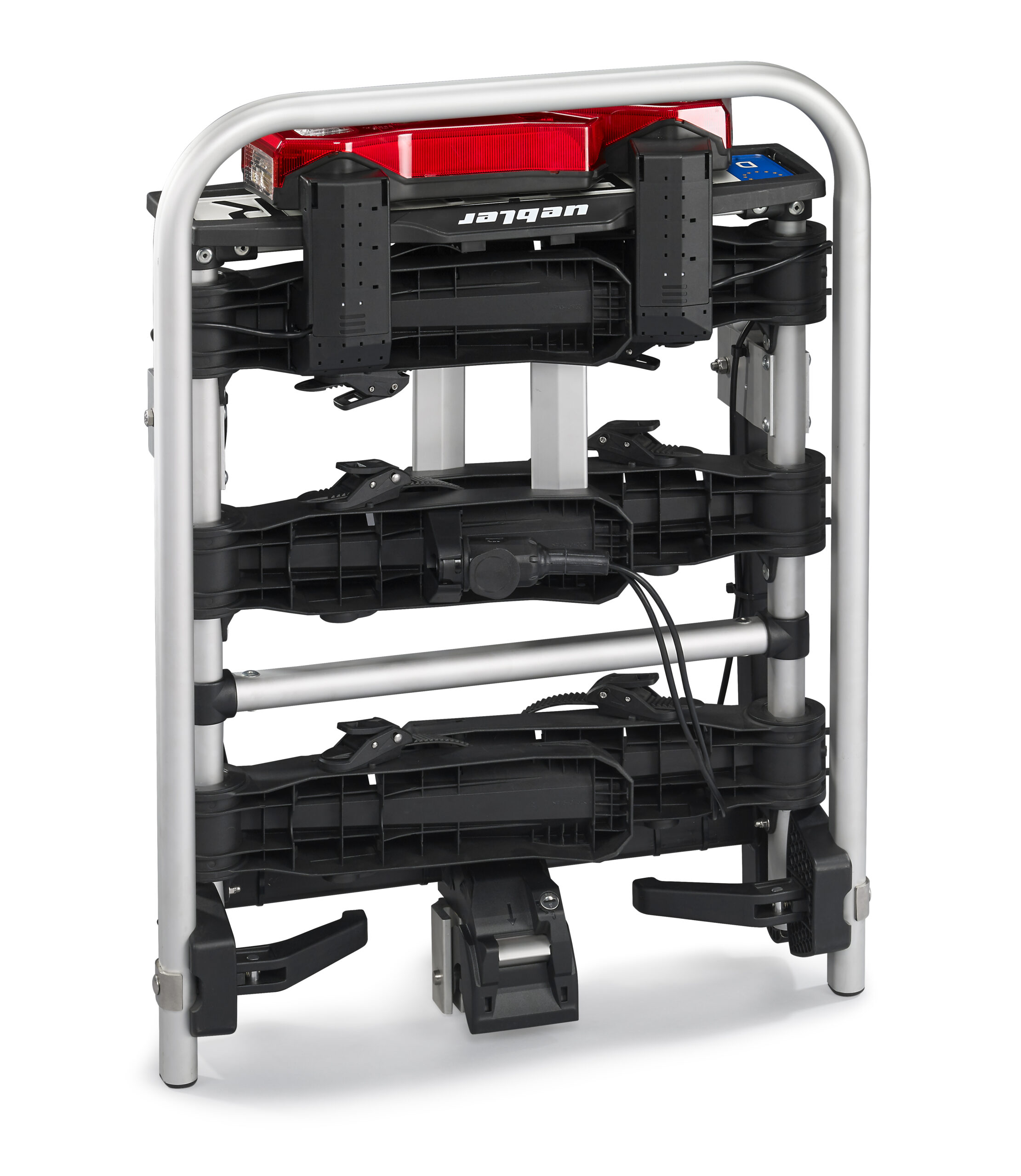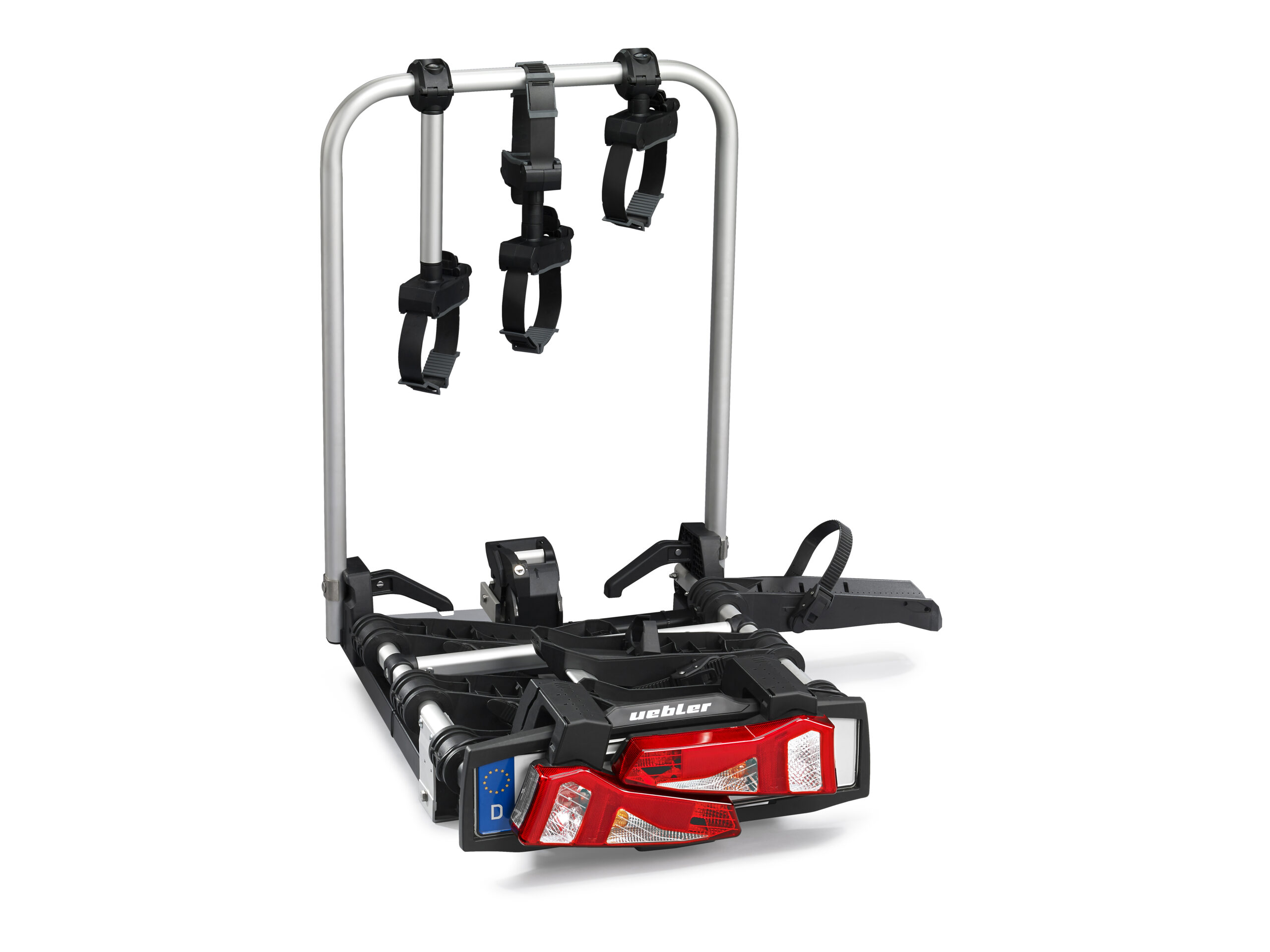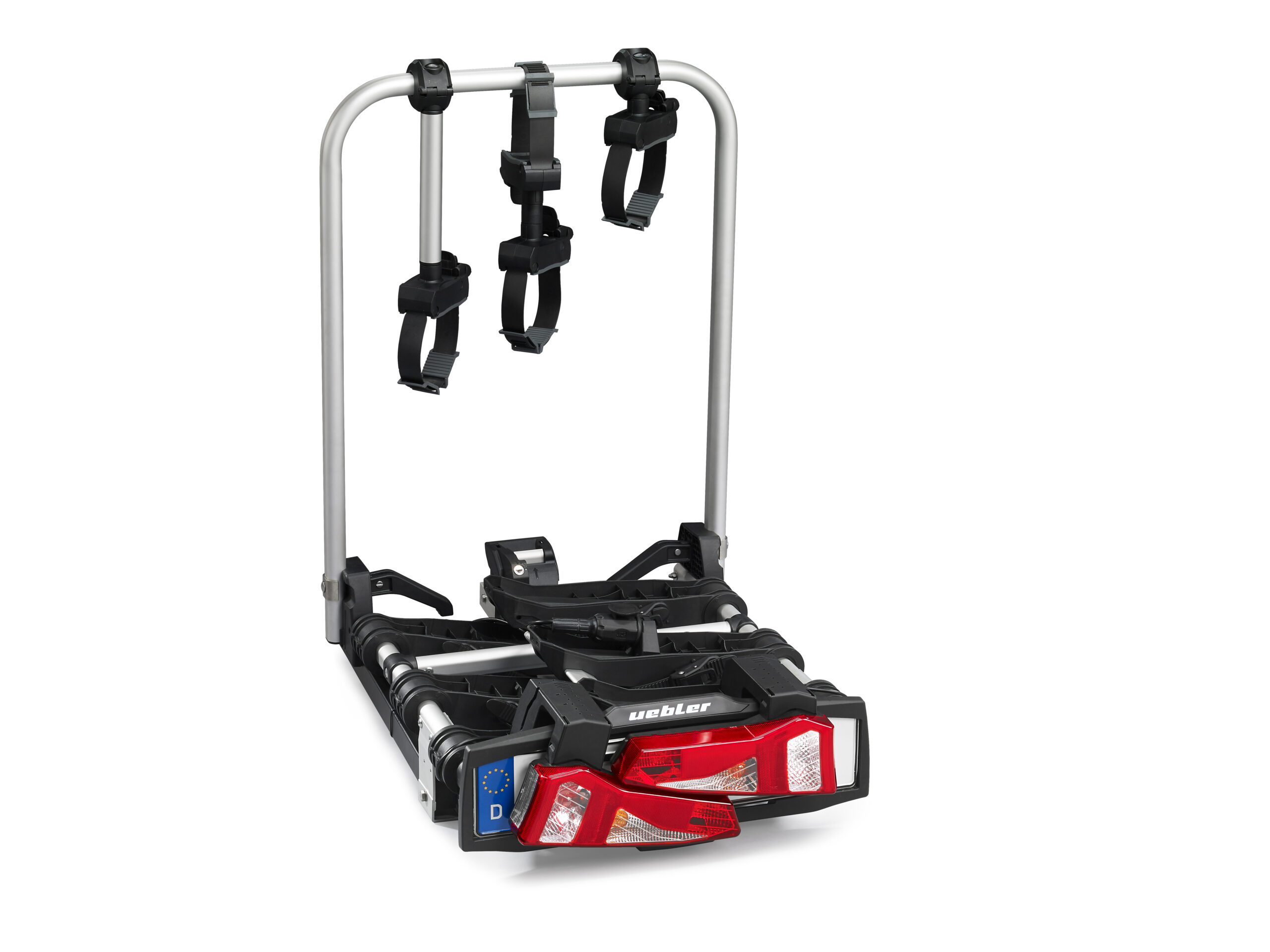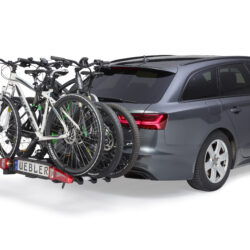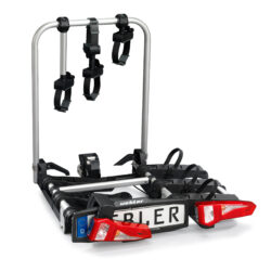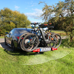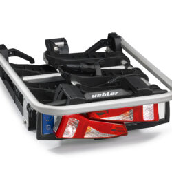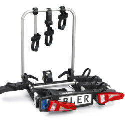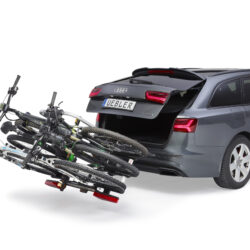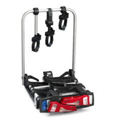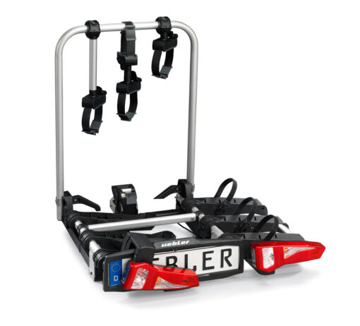 Ľahký a spratný nosič pre 3 bicykle s nosnosťou až 72kg s jednoduchou inštaláciou na ťažné zariadenie vďaka rýchloupínaciemu systému IQ, s uchytením bicyklov pomocou ramien s pásom pre široké rámy bicyklov a parkovacími senzormi
