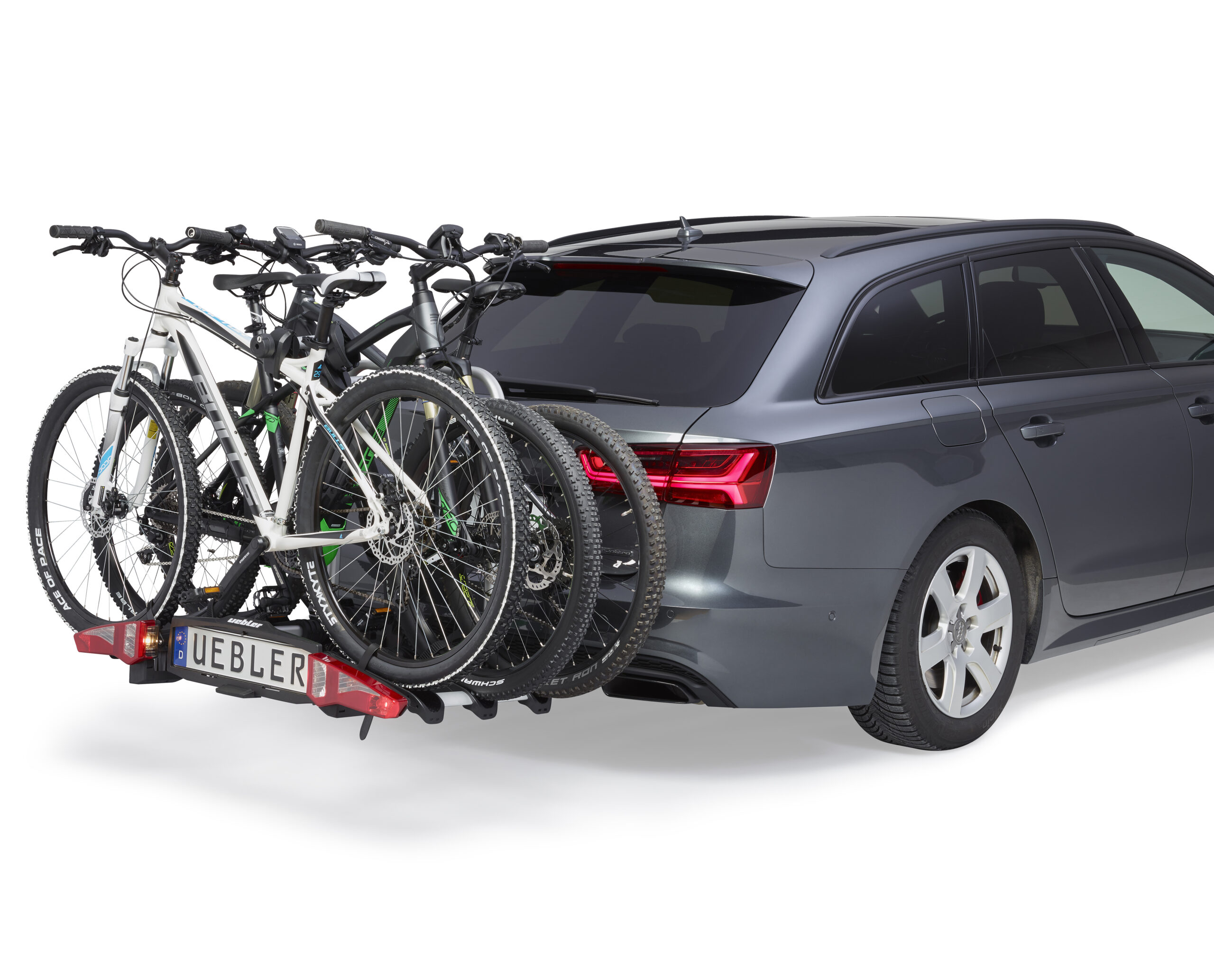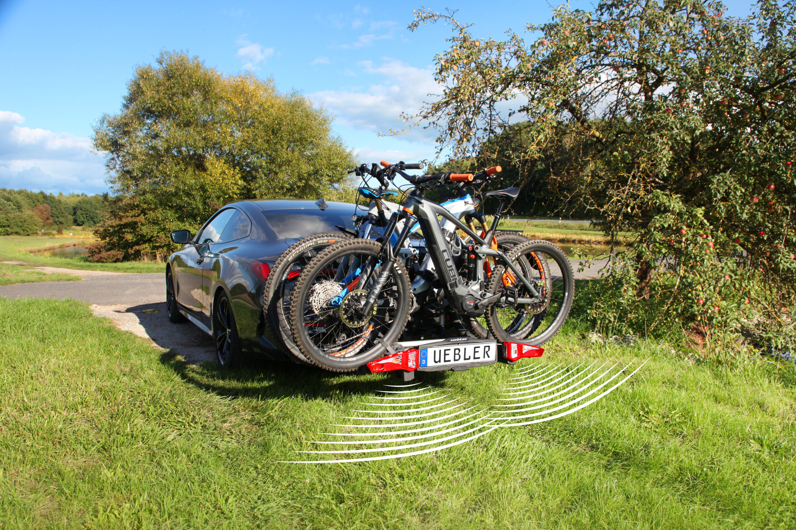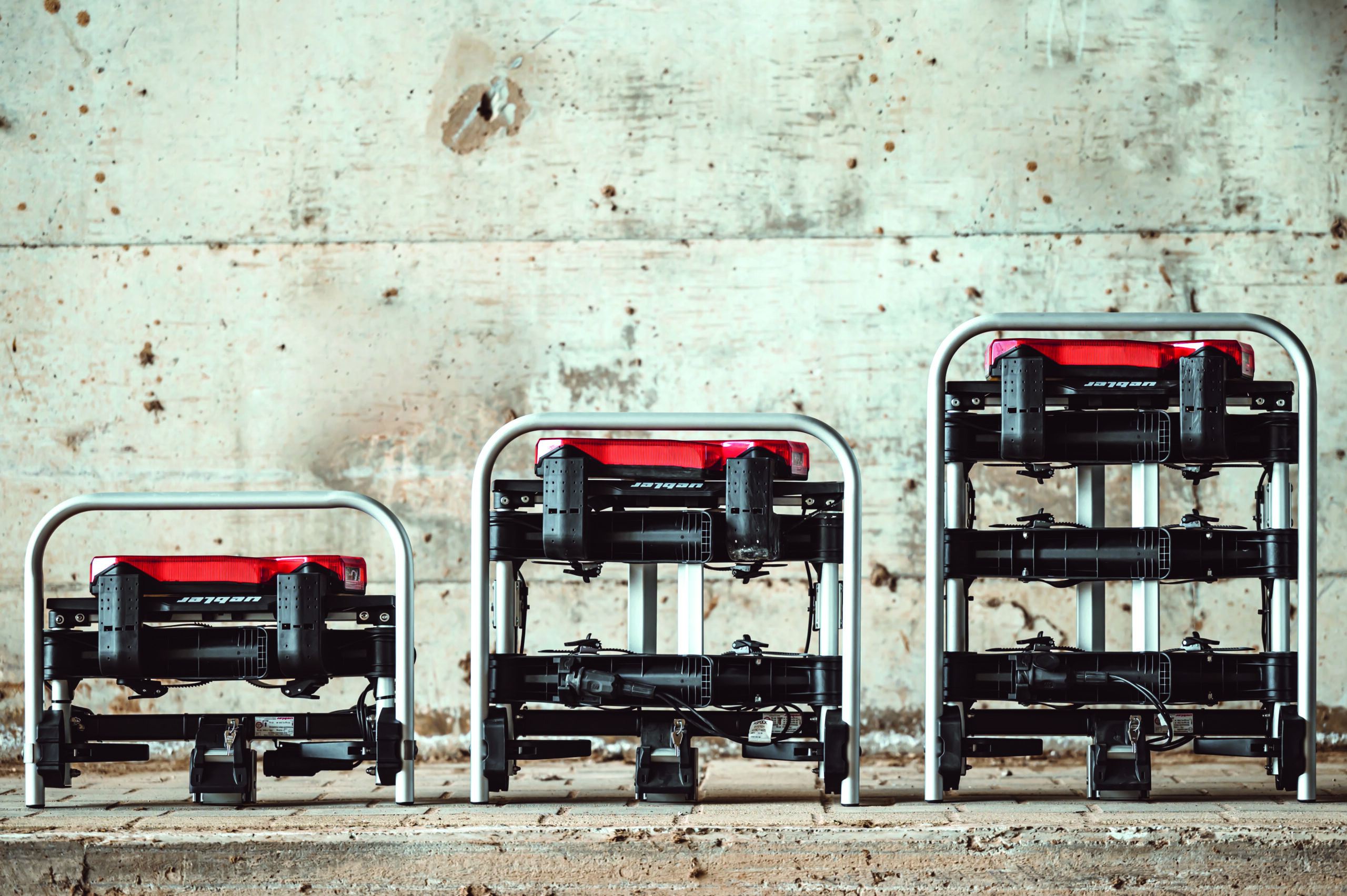 Ľahký a spratný nosič pre 3 bicykle s nosnosťou až 72kg s jednoduchou inštaláciou na ťažné zariadenie vďaka rýchloupínaciemu systému IQ, s uchytením bicyklov pomocou ramien s pásom pre široké rámy bicyklov a parkovacími senzormi